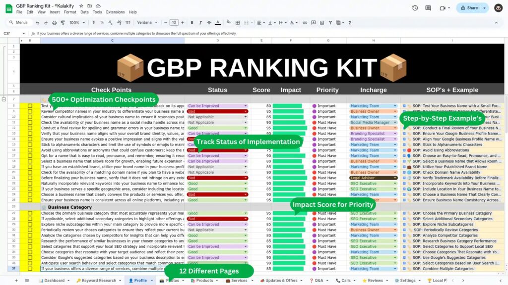 This kit includes every checklist, template, SOP, and process you need to start, manage, and grow your business on Google. Weāre talking detailed, actionable steps for optimizing every single aspect of a GBPāsteps that are already ranking 470+ profiles across industries.
